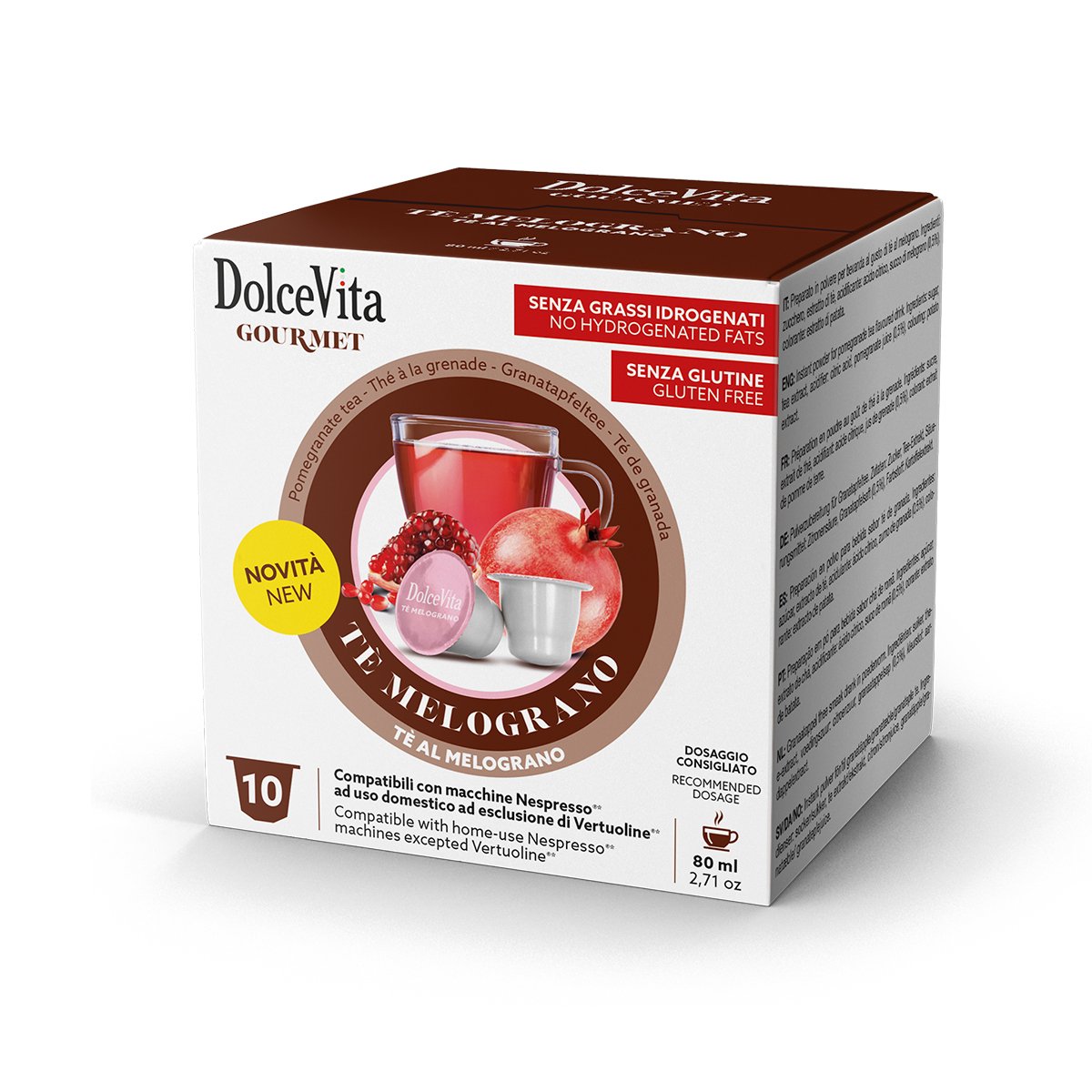 Instant drink with pomegranate flavored tea. The perfect union between the taste of tea and the properties of pomegranate. Good both hot and cold.